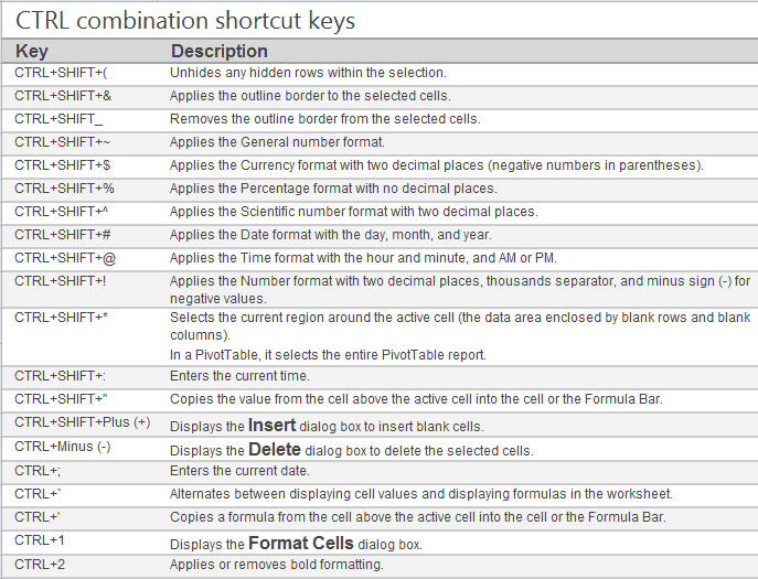 - Click the link for Keyboard Shortcuts for Excel 2010