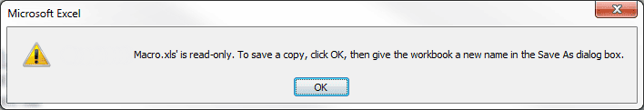 If you select Yes to "Open as Read-only?" and try to save the file you get a pop-up screen asking you to give the workbook a new name in the Save As dialog box.